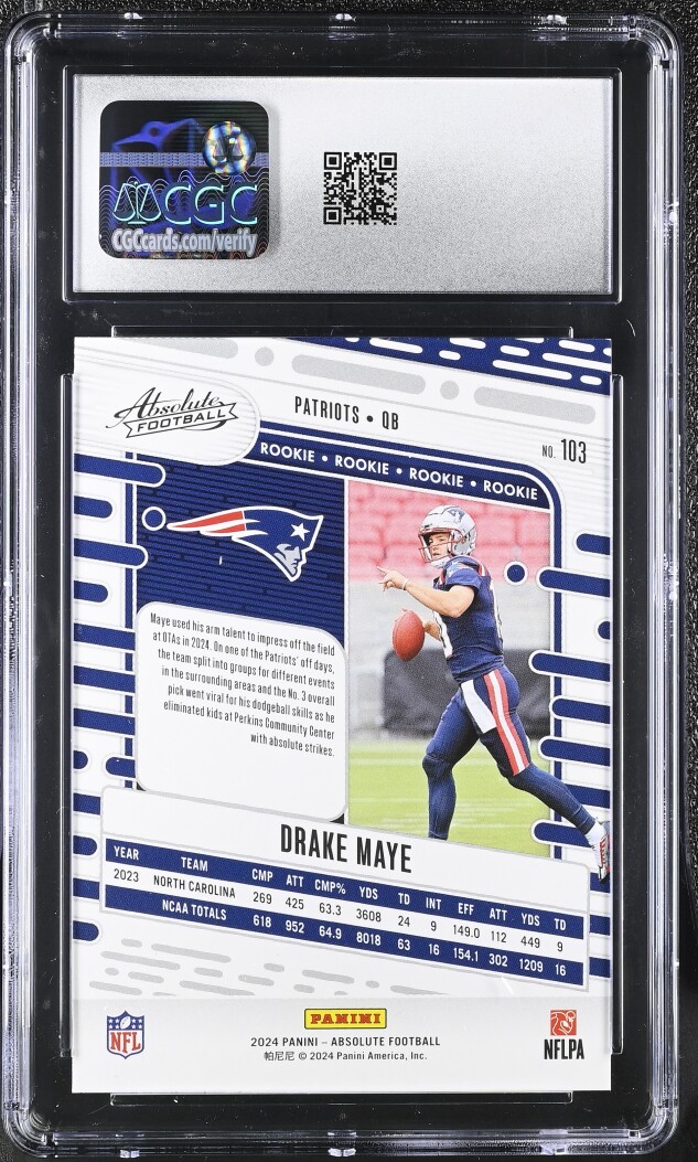 2024 Panini Absolute YELLOW #103 Drake Maye CGC 10