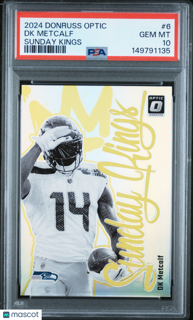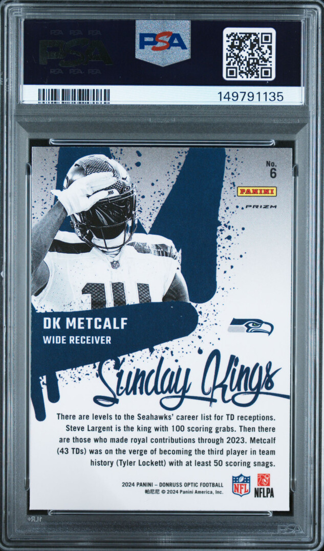 You are purchasing a 2024 Panini Donruss Optic Sunday Kings DK Metcalf #6 PSA 10. You will receive the exact item in the photographs. Thank you for looking.