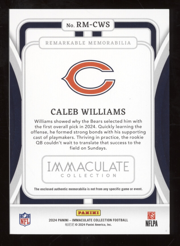 2024 Panini Immaculate Collection Remarkable Memorabilia Caleb Williams 29/49