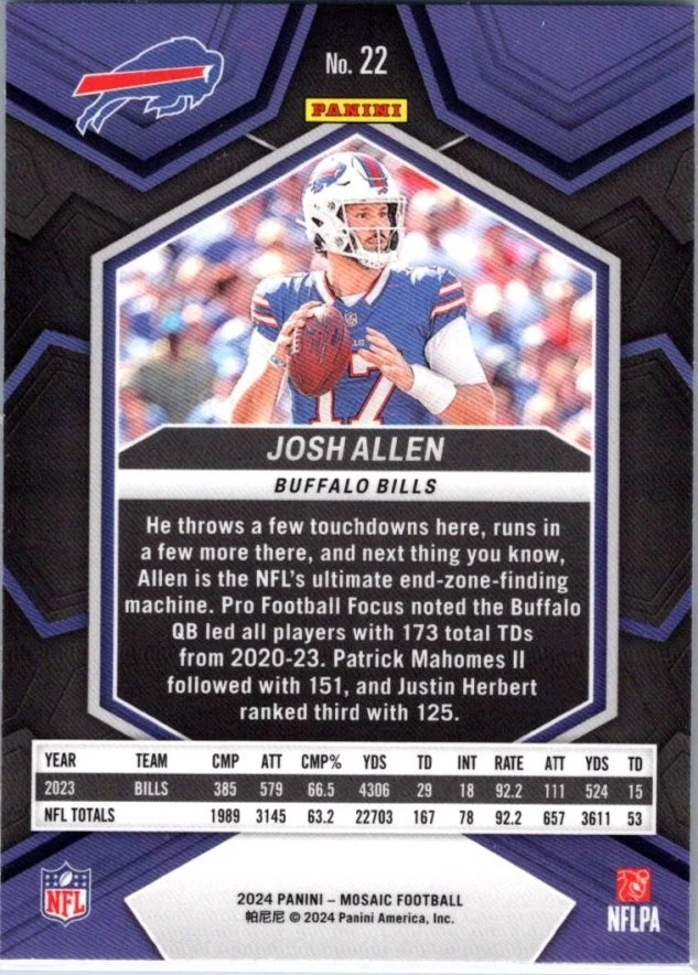 This is a nice example of a 2024 Panini Mosaic #22 Josh Allen