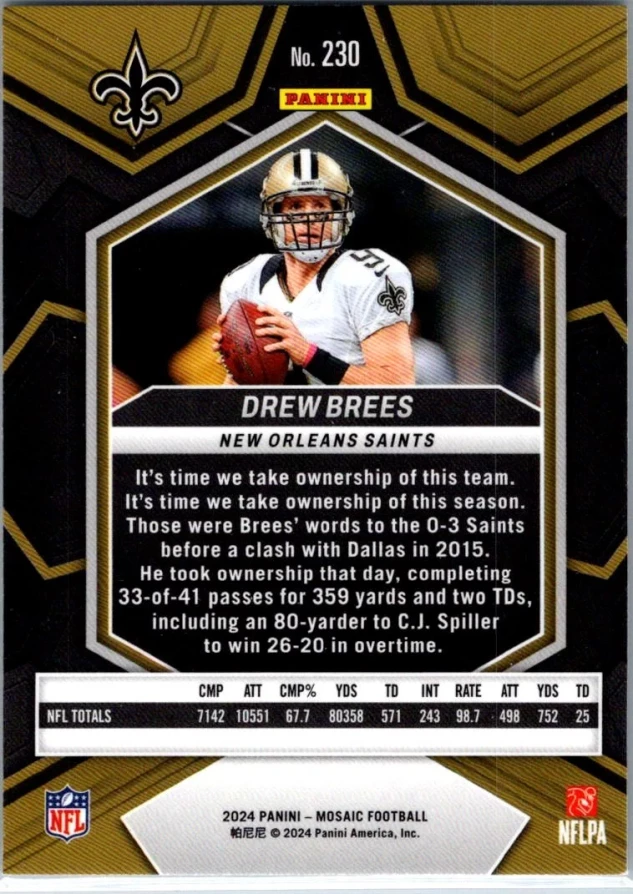 This is a nice example of a 2024 Panini Mosaic #230 Drew Brees