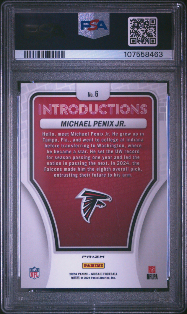 You are purchasing a { 2024 Panini Mosaic Introductions Michael Penix JR. #6 Silver No Huddle PSA 10. You will receive the exact item in the photographs. Thank you for looking.