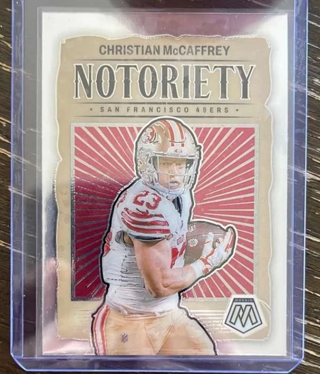 This is a nice example of a 2024 Panini Mosaic - Notoriety #9 Christian McCaffrey