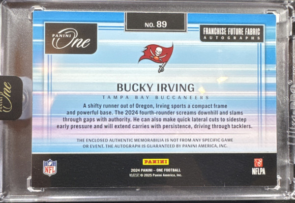 You are purchasing a 2025 2024 Panini One Bucky Irving #80 Relic Rookie Panini Authentic. You will receive the exact item in the photographs. Thank you for looking.