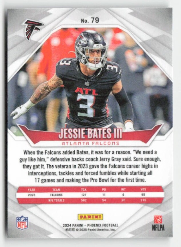 You are purchasing a 2024 Panini Phoenix Jessie Bates III #79. You will receive the exact item in the photographs. Thank you for looking.