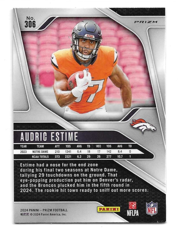 2024 PANINI PRIZM PRIZMS GREEN ICE #306 AUDRIC ESTIME (RC)