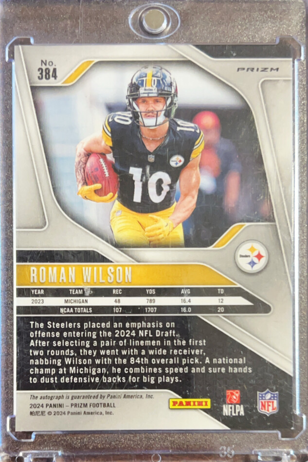 You are purchasing a 2024 Panini Prizm Roman Wilson #384 Silver RC. You will receive the exact item in the photographs. Thank you for looking.