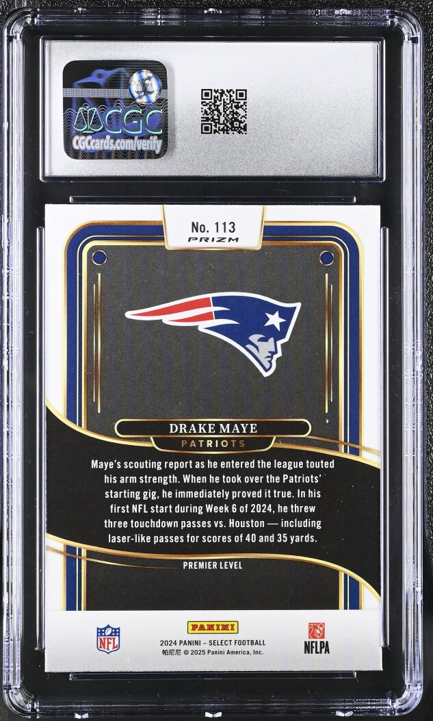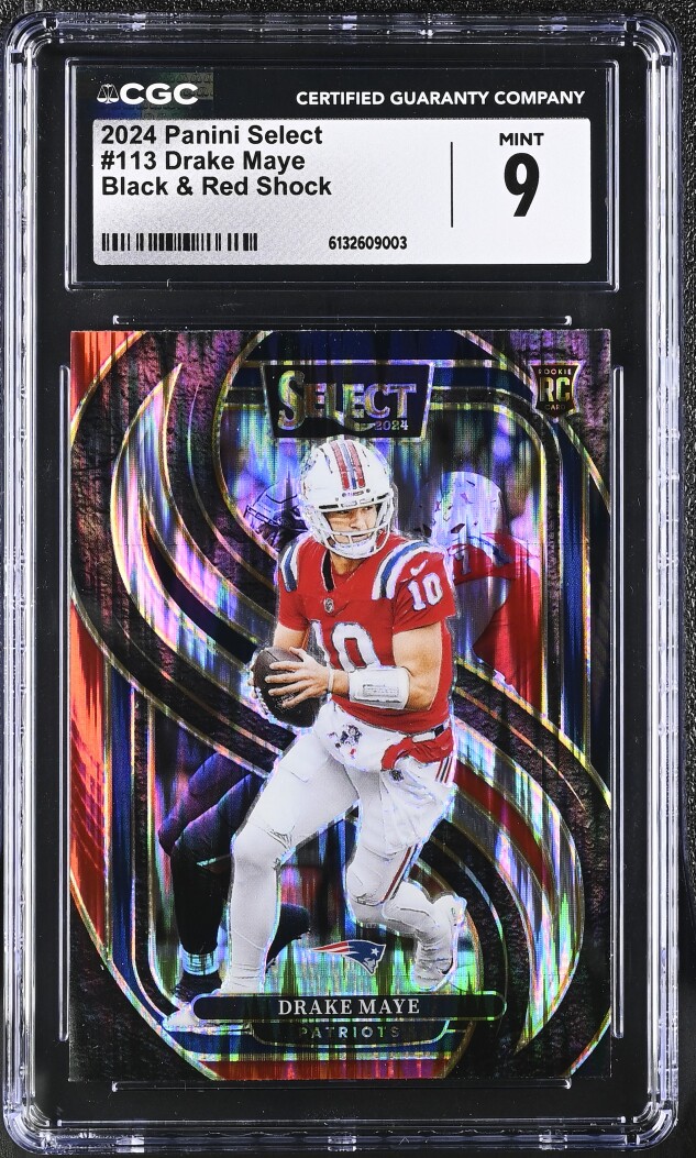 2024 Panini Select #113 Drake Maye Black & Red Shock Prizm CGC 9