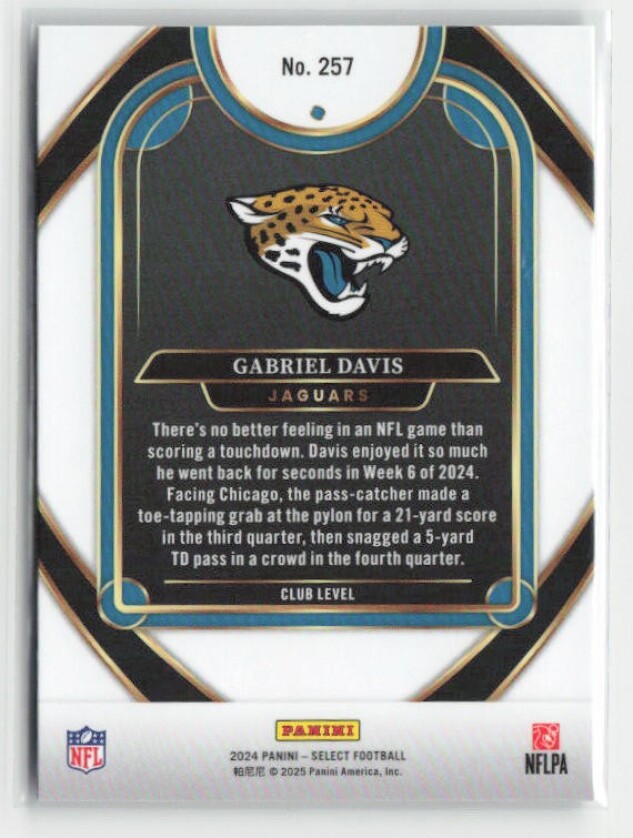 You are purchasing a 2024 Panini Select Gabriel Davis #257. You will receive the exact item in the photographs. Thank you for looking.