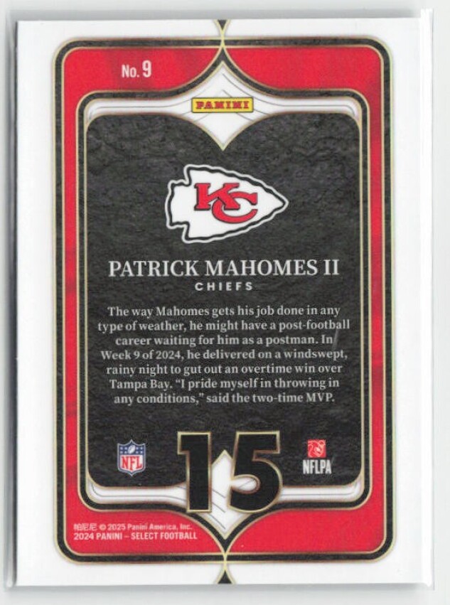 2024 Panini Select #9 Patrick Mahomes II Select Numbers
