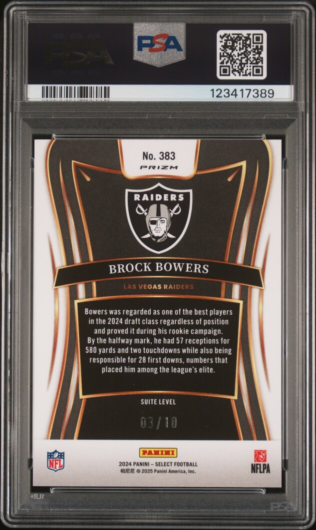 You are purchasing a 2024 Panini Select Brock Bowers Gold Prizm PSA 10. You will receive the exact item in the photographs. Thank you for looking.
