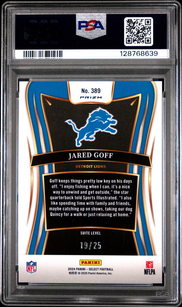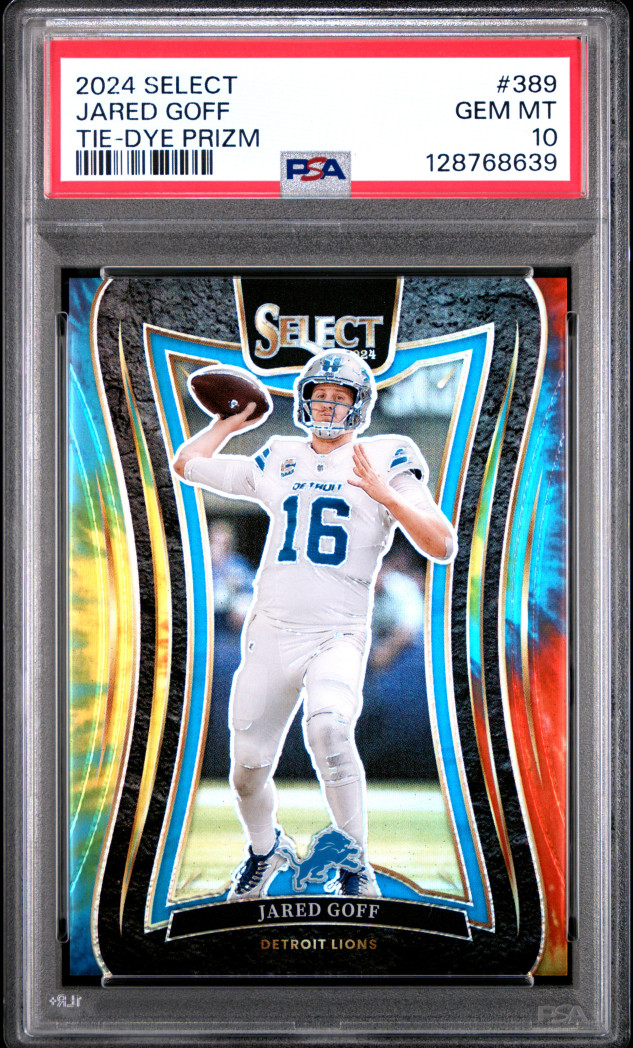 2024 Panini Select Jared Goff Tie-Dye Prizm PSA 10