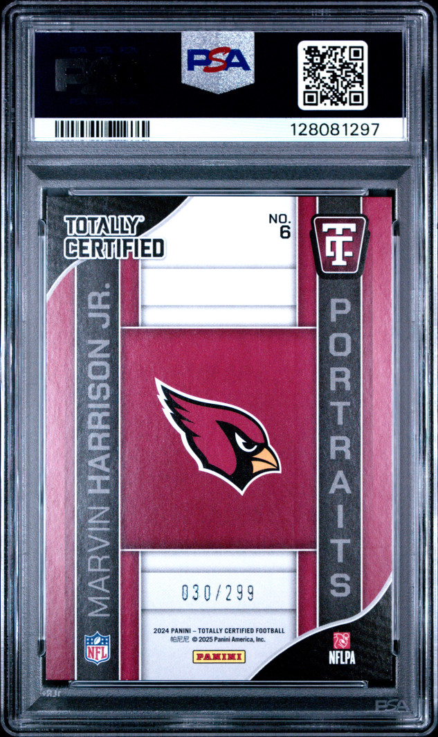 2024 Panini Totally Certified Portraits Marvin Harrison Jr. Portraits Mirror Neon Green /299 PSA 8.5