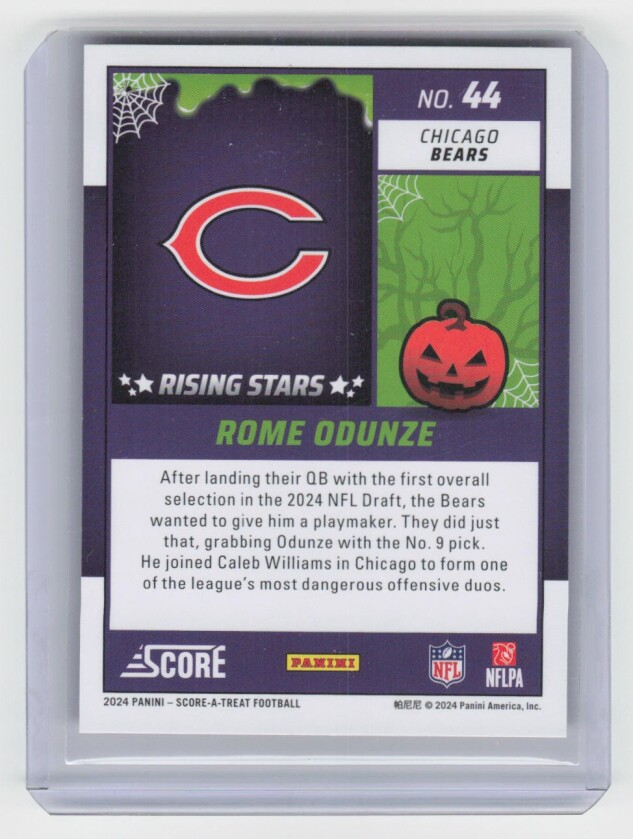 You are purchasing a 2024 Score-A-Treat Rome Odunze #44 Rising Stars Orange Pumpkin. You will receive the exact item in the photographs. Thank you for looking.