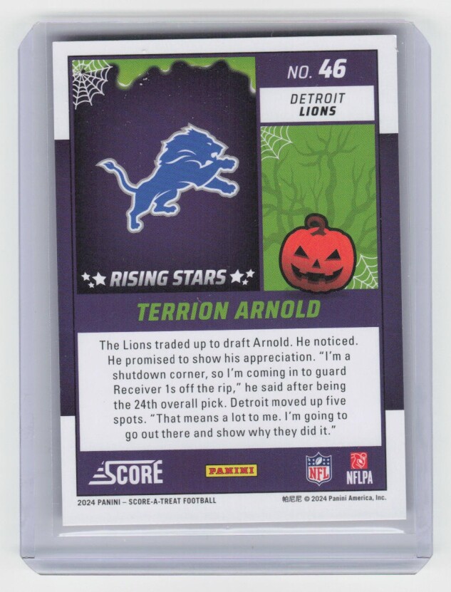 You are purchasing a 2024 Score-A-Treat Terrion Arnold #46 Rising Stars Orange Pumpkin. You will receive the exact item in the photographs. Thank you for looking.