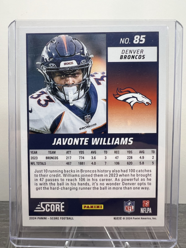2024 Score - Javonte Williams #85 Lava The 1 Spot Out of /630 Denver Broncos. Near mint or better.