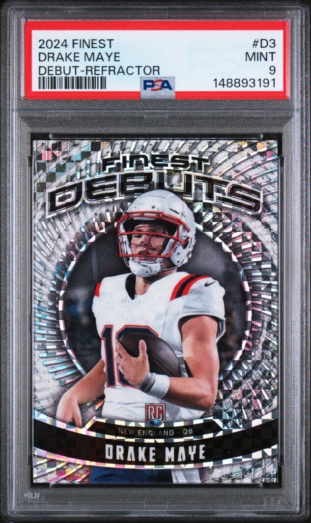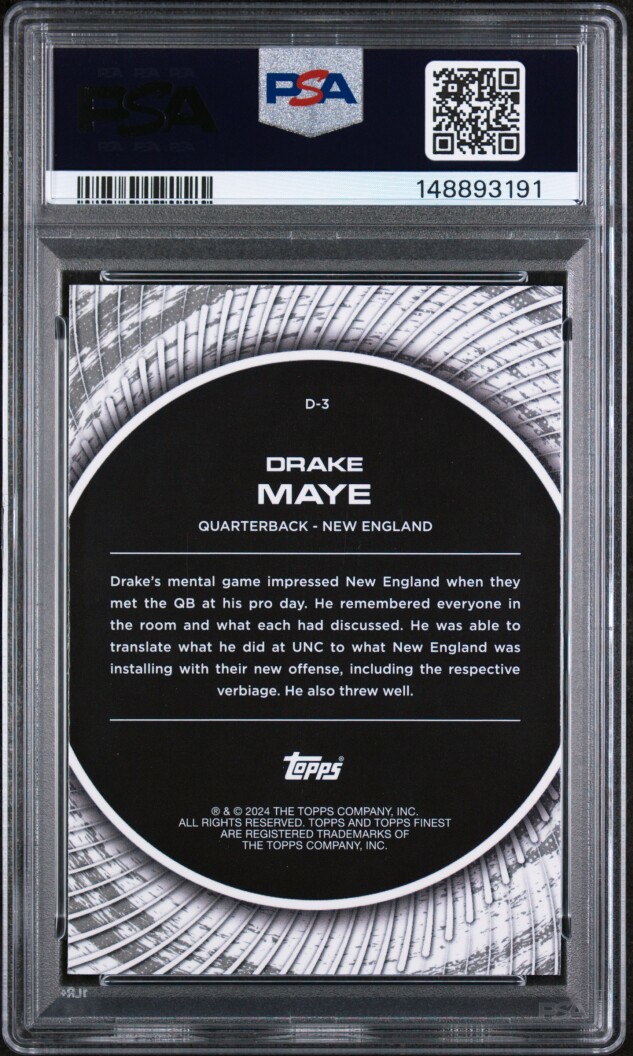 2024 Topps Finest DRAKE MAYE Rookie Card RC RARE SSP DEBUT REFRACTOR #D-3 - GRADED PSA 9 MINT - New England Patriots