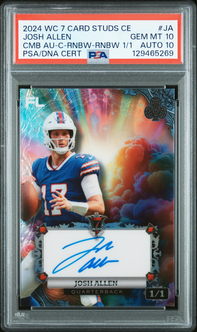 2024 Wild Card 7 Card Studs Combo Autograph Cloud Explosion Josh Allen Cmb Au-C-Rnbw-Rnbw 1/1 PSA 10 AUTO 10