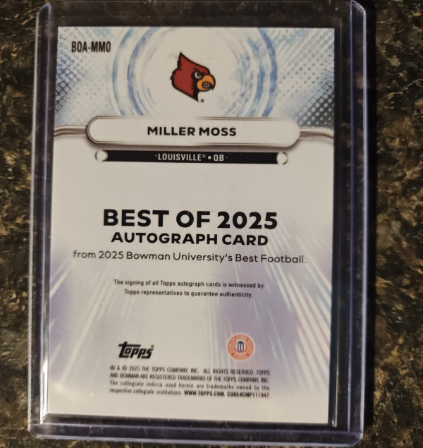 2025 Bowman University Best- The Best Of 2025 Miller Moss Autograph Blue 10/150.