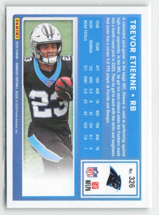 You are purchasing a 2025 Donruss Trevor Etienne #326 Press Proofs Green RC. You will receive the exact item in the photographs. Thank you for looking.