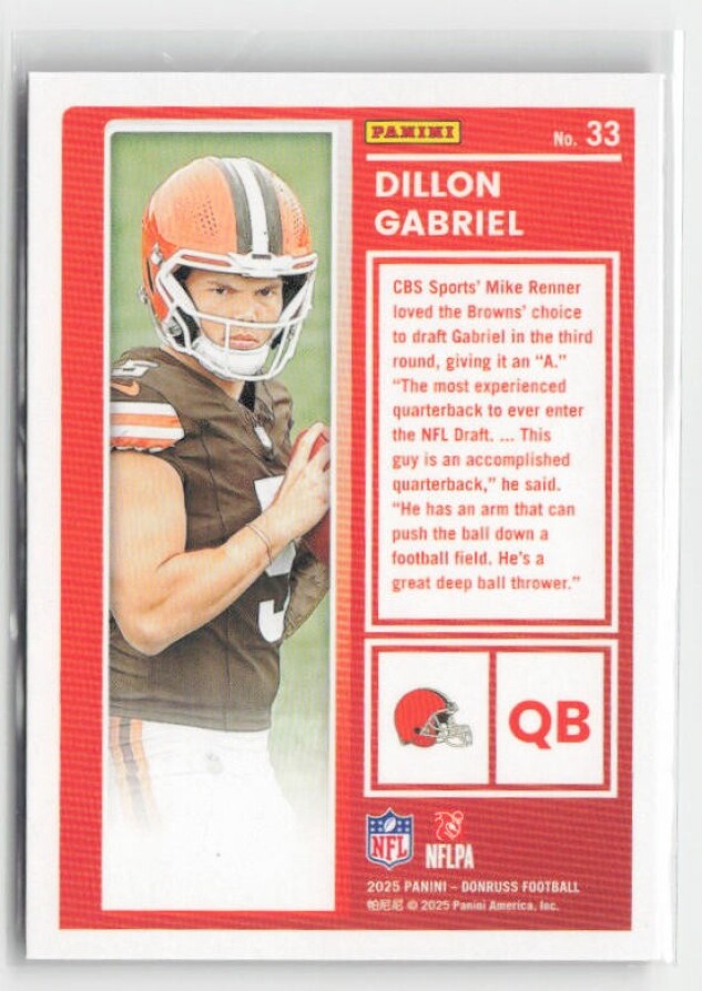 You are purchasing a 2025 Donruss Dillon Gabriel #33 The Rookies. You will receive the exact item in the photographs. Thank you for looking.