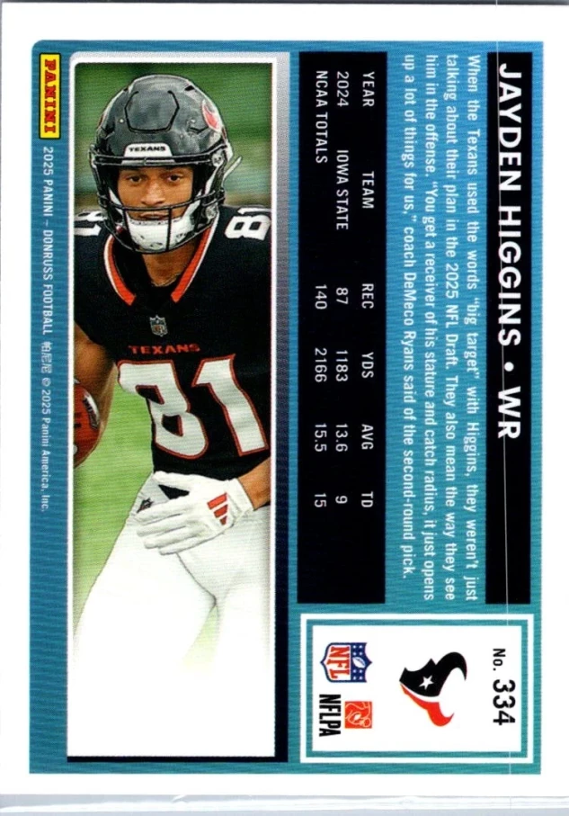 This is a nice example of a 2025 Donruss #334 Jayden Higgins