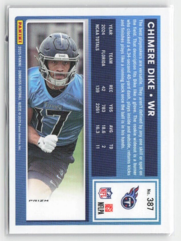You are purchasing a 2025 Donruss Chimere Dike #387 Optic Rated Rookies Preview Pink RC. You will receive the exact item in the photographs. Thank you for looking.