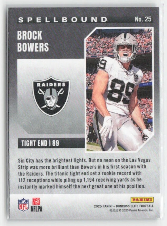 You are purchasing a 2025 Donruss Elite Brock Bowers #25 Spellbound Lavender. You will receive the exact item in the photographs. Thank you for looking.