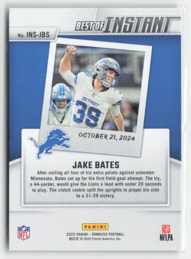 You are purchasing a 2025 Donruss Jake Bates #INS-JBS Best of Instant. You will receive the exact item in the photographs. Thank you for looking.