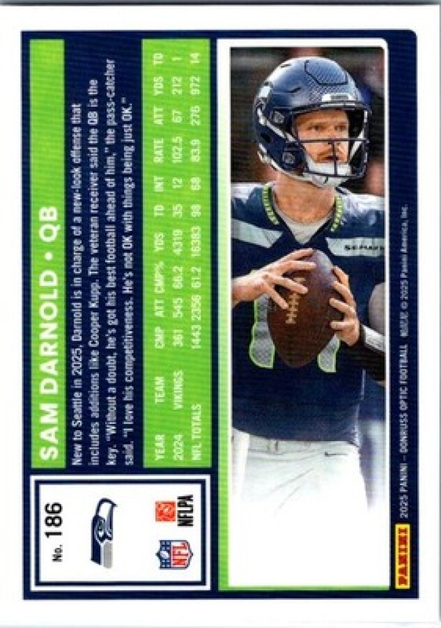 This is a nice example of a 2025 Donruss Optic #186 Sam Darnold