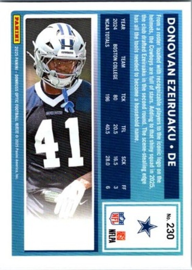 This is a nice example of a 2025 Donruss Optic #230 Donovan Ezeiruaku