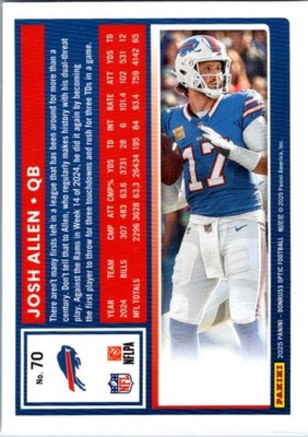 This is a nice example of a 2025 Donruss Optic #70 Josh Allen