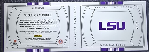 2025 National Treasures Collegiate Will Campbell RPA Booklet #/99