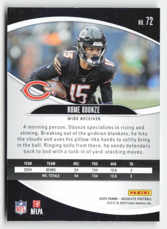 You are purchasing a 2025 Panini Absolute Rome Odunze #72 Retail. You will receive the exact item in the photographs. Thank you for looking.