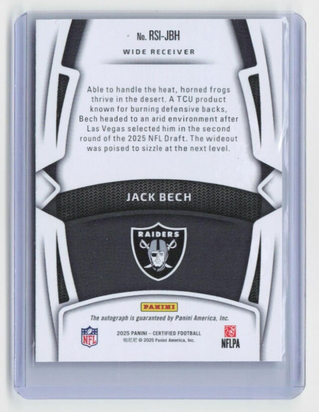 You are purchasing a 2025 Panini Certified Jack Bech #RSI-JBH Rookie Signatures 055/125 SN AU. You will receive the exact item in the photographs. Thank you for looking.