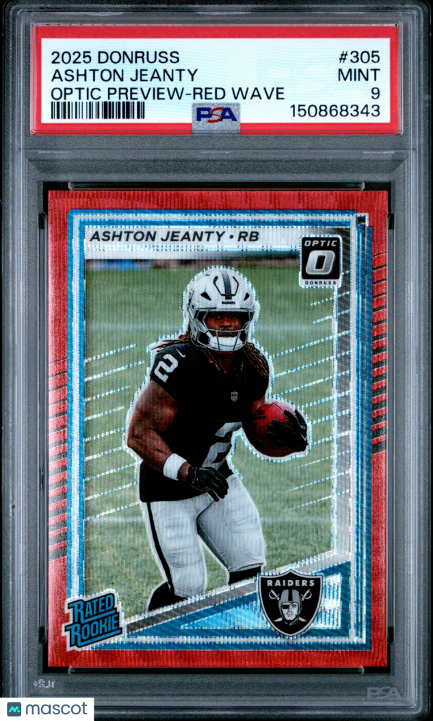 You are purchasing a 2025 Panini Donruss Ashton Jeanty #305 Optic Preview Red Wave PSA 9. You will receive the exact item in the photographs. Thank you for looking.