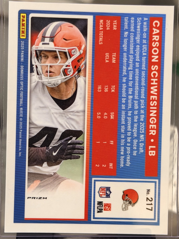 2025 Panini Donruss Optic - Carson Schwesinger #217 Pink Holo Rated Rookie (RC)