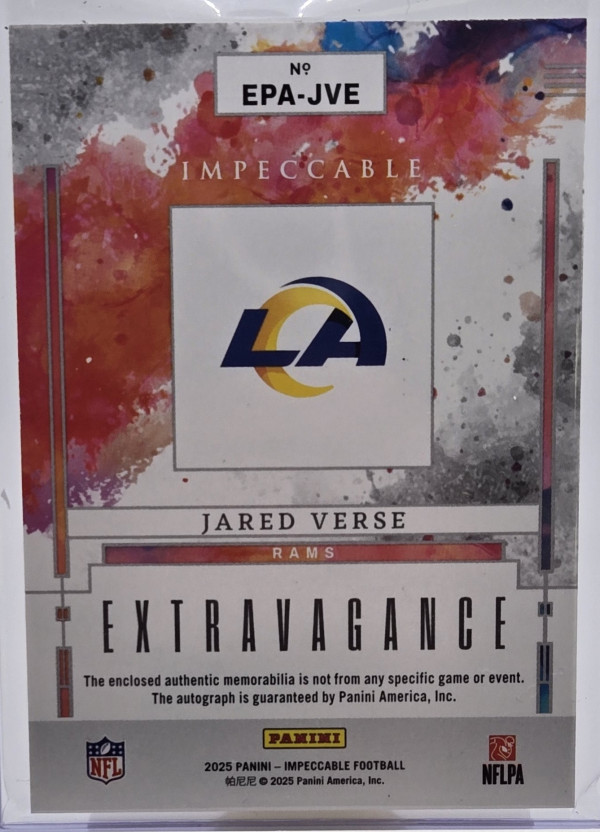 2025 Panini Impeccable JARED VERSE Extravagance 3 Color Patch Auto /35 LA Rams