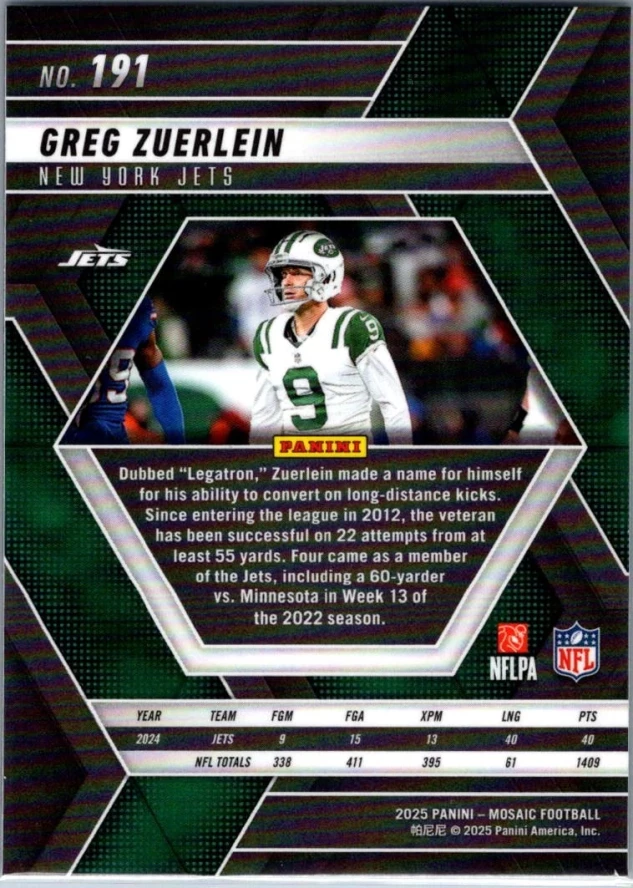 This is a nice example of a 2025 Panini Mosaic #191 Greg Zuerlein
