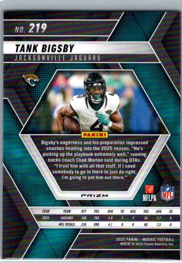 This is a nice example of a 2025 Panini Mosaic #219 Tank Bigsby Mosaic Green