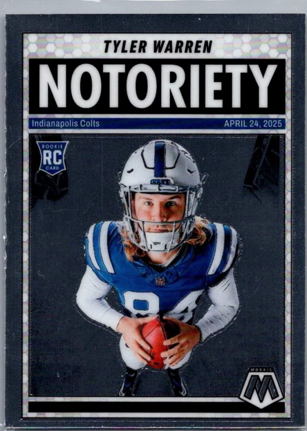 This is a nice example of a 2025 Panini Mosaic #25 Tyler Warren Notoriety