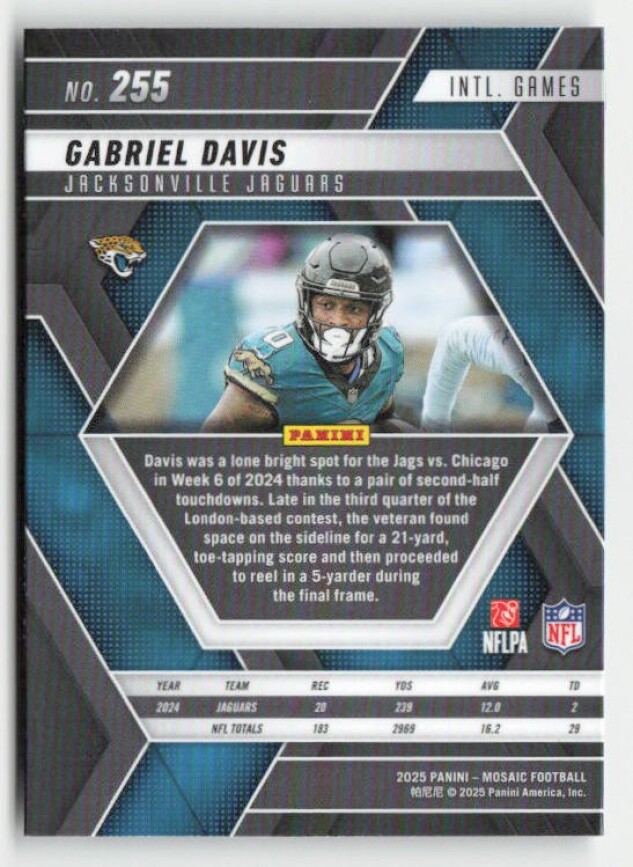 You are purchasing a 2025 Panini Mosaic Gabriel Davis #255. You will receive the exact item in the photographs. Thank you for looking.