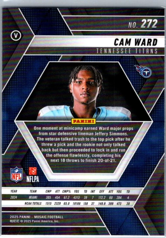This is a nice example of a 2025 Panini Mosaic #272 Cam Ward