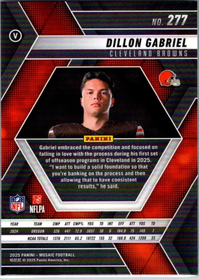 This is a nice example of a 2025 Panini Mosaic #277 Dillon Gabriel