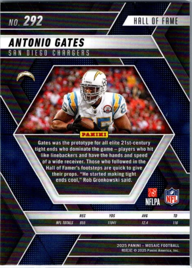 This is a nice example of a 2025 Panini Mosaic #292 Antonio Gates