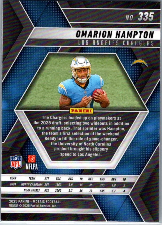 In 2025 Omarion Hampton played for the Los Angeles Chargers.