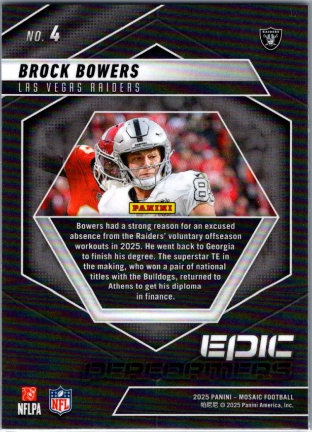 This is a nice example of a 2025 Panini Mosaic #4 Brock Bowers Epic Performers