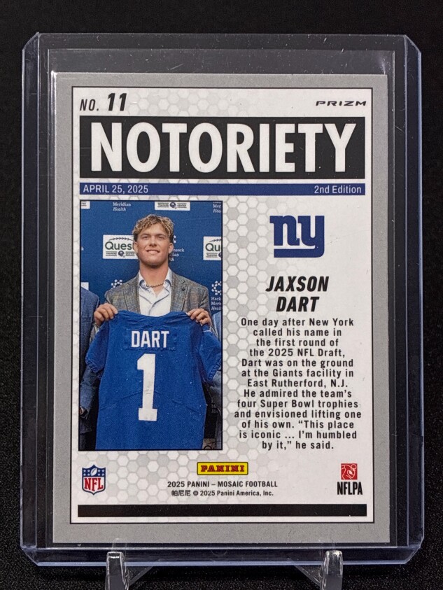 2025 Panini Mosaic Jaxson Dart Notoriety Insert Orange Fluorescent Prizm