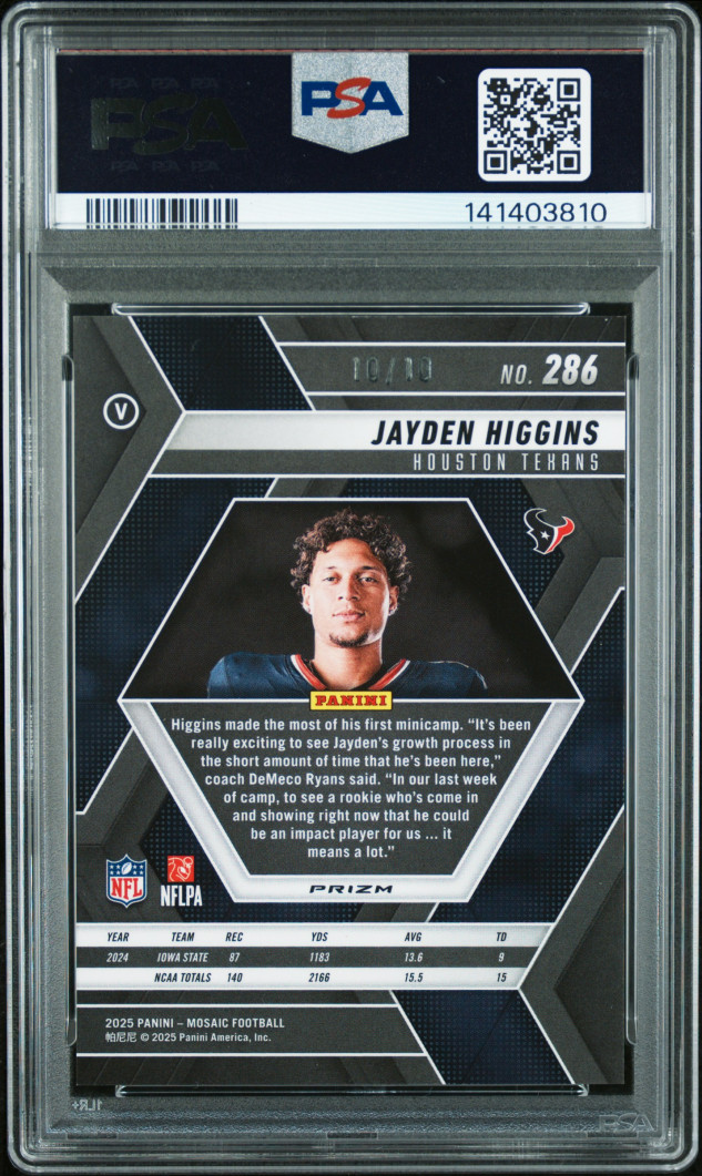 2025 Panini Mosaic Jayden Higgins Gold