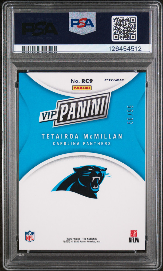 2025 NSCC VIP TETAIROA MCMILLAN GOLD. RED SPARKLE RC /99. PSA 9. POP 2
